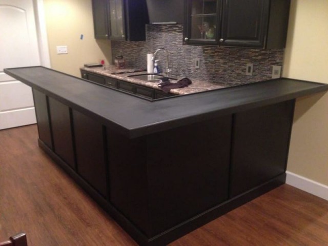 Потом льем еще слой и еще, пока смола не сравняется с бортиками столешницы.