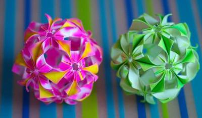 Не смотря на то, что эти шары также из бумаги, как и те про которые мы говорили в первом абзаце нашей статьи. Все же мы хотели бы выделить технику "Кусудами" в отдельных абзац. Все дело в том, что для изготовления таких шаров вам потребуется не только больше времени и терпения, но и особые умения обращения с бумагой.