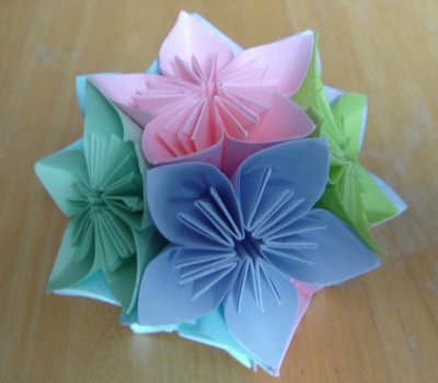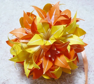 Итак, за основополагающую идею шаров различных оформительских форм может быть принята техника "Кусудами". Формы цветов, составляющих шар могут быть самыми разнообразными. Взгляните на фото ниже...