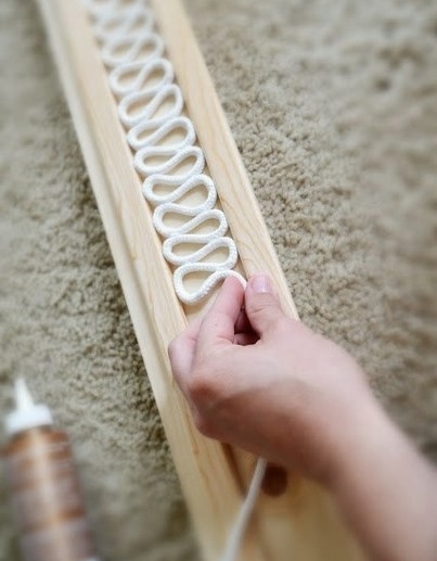 Первым делом нам необходимо подобрать или сделать рейку, с двумя ограничителями, сверху и снизу. Именно между этими ограничителями и будет закладываться веревка, как видно на фото. Веревка будет извиваться туда – сюда, виток к витку.