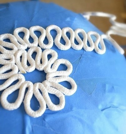 Далее, чтобы придать нашей кружевной веревке жесткость, так сказать зафиксировать столь изящные линии, мы пропитаем веревку клеем.