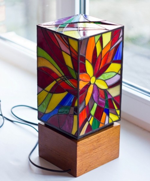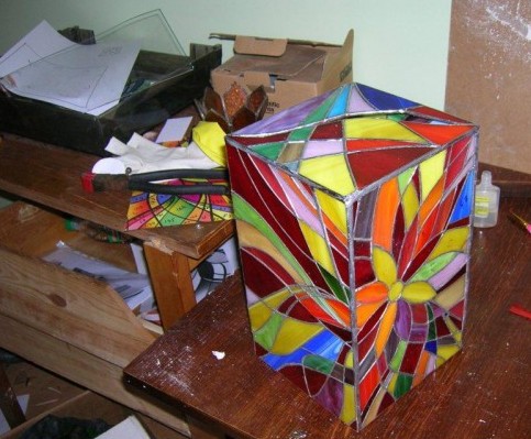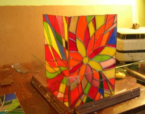 Процесс изготовления светильника из цветного стекла в стиле «Тиффани» своими руками