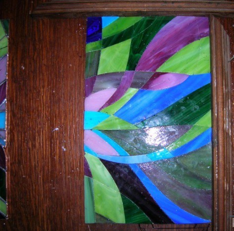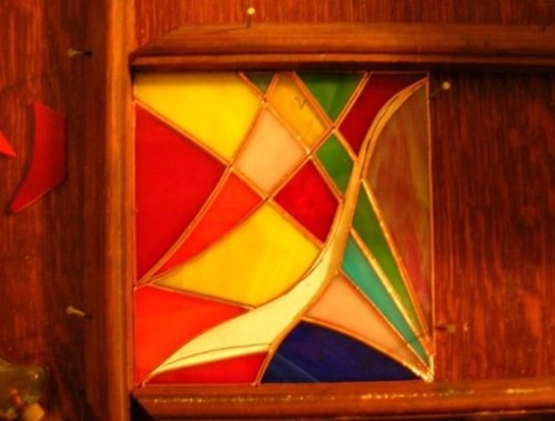 Начинаем примерять и подгонять получившиеся элементы цветного стекла. Работа длительная, требующая аккуратности и терпения.