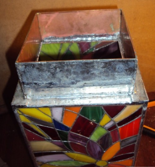 Для скрепления стенок возможно применение медной проволоки, для впайки ее в шов. Таким образом сборка будет более жестокой и крепкой. Крышку делаем по аналогии со стенками. Единственное, чем крышка должна отличаться от стенок, так это тем, что в ней должны быть предусмотрены отверстия (ие), через которые (ое) будет выходить теплый воздух от лампочки.