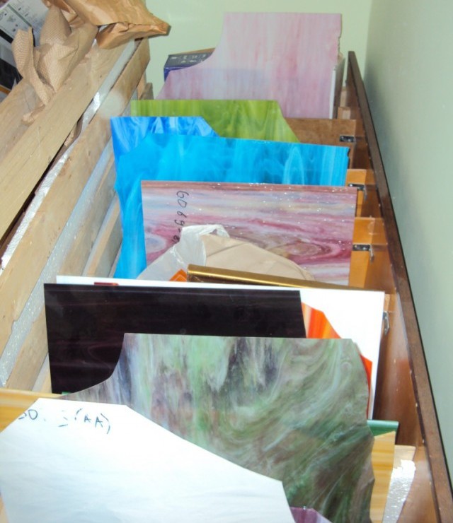 Стекло для витражей, а в нашем случае для светильника, используется специальное. Такое стекло предназначено именно для производства работ в стиле «Тиффани». Надо заметить, что стекло это в России и странах СНГ не дешевое, хотя в «загнивающих» капиталистических странах ценник на порядок ниже. Так у нас такое стекло площадью 0,6-0,8 кв. м может стоить и по 70 долларов за штуку. Именно поэтому производство таких не всегда рентабельно, если вы будете заниматься этим единожды.