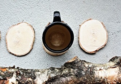 Еще один вариант подставки мы вам предложим изготовить из природных материалов. В нашем случае подставки напилены из березы, а еще лучше, если это можжевельник. Запах будет просто незабываемый, особенно если его разогреть горячей кружкой.