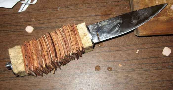 Изготавливаем ручку ножа из бересты своими руками