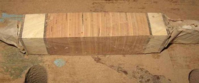Далее если вы будете применять клей, то поливаем все сверху клеем. Здесь можно сделать так, развести ПВА 1:1 с водой и просто промокнуть всю сборку этим раствором. 2-3 минут достаточно. Затем ждем минут 5-7 пока клей немножко схватиться и все снимаем с рукоятки. Теперь берем стяжку и уже как следует стягиваем все листы бересты.