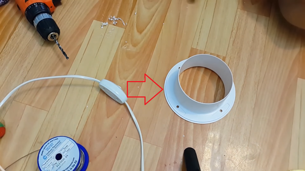 Нам понадобиться пластиковая труба, подойдет даже канализационная труба, хотя в нашем случае это вентиляция. Также кроме трубы необходима будет заглушка для нее, которая станет также опорой. Плюс патрон, чтобы вкрутить лампу и провод с вилкой и выключателем.