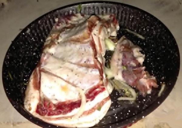 И теперь результаты работы в прагматичности применения печки. Это свиные ребрышки. Освещение не очень, но запах как будто перед монитором!