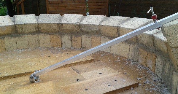 Последователям - советую выпилить больше фанерных лучей (добавить к моим 2-4), чтобы стояли почаще, иначе в некоторых моментах приходится поддерживать кирпичи, чтобы они не "клюнули" - не сползли во внутрь. Очень помогает резиновый молоток в деле, им очень удобно подбивать кирпич. Главное, чтобы во внутреннем диаметре кирпич как можно плотнее друг к другу прилегал.