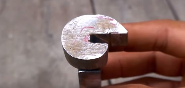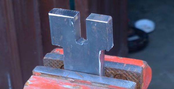 Теперь посмотрим как это будет в процессе. Надо будет вставить приспособление в тиски, потом вставить заготовку - шинку и теперь можно крутить рычагпротив часовой стрелки, если смотреть сверху.