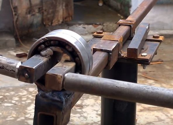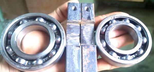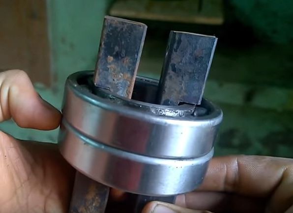 А внутрь подшипника ввариваем две детали, к которым закрепим ручки.