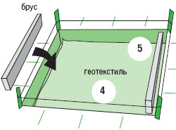 4. Постелите защитный фильтр (например, геотекстиль) на всю поверхность, предназначенную для укладки плитки. Это позволит предотвратить смешение материалов, песок не будет вымываться в грунта, а также предотвратит прорастание корней.
