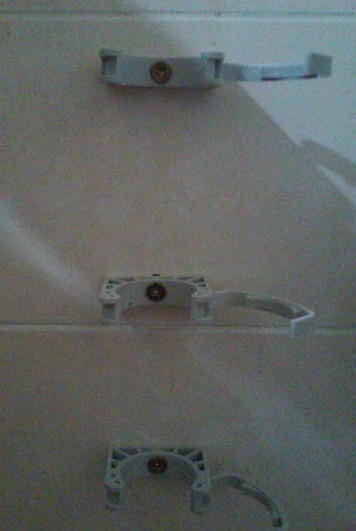 Всех по 1 штуке. Труба 32. В нашем случае не было перехода сразу на 32 трубу, поэтому пришлось использовать два переходника, но это совсем не обязательно. Также потребуются еще и крепеж для установки кормушки к стене. Это стандартный крепеж для 32 трубы. Всего надо будет 3 крепления. Теперь приступаем к установке кормушки для кошек. Прикидываем, как будет установлена кормушка, исходя из длины отвода и трубы. Размечаем три точки для сверления отверстия в стене. В нашем случае это еще и кафель. О том, как сверлить отверстия в кафеле, можно прочитать в статье «Сверлим отверстие в кафельной плитке».