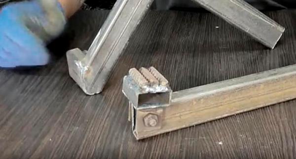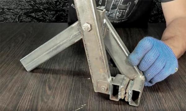 Потом берем вторую прямую трубу 40*20 и на ней тоже устанавливаем поворотную площадку с подобной поверхностью для захвата.