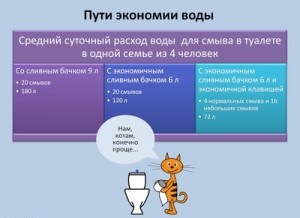 Теперь про использование унитазов, вернее бачков унитаза. Именно современный унитаз, а именно бачок способен нам значительно сэкономить. Современные бачки унитаза имеют два режима, это мы знаем, но зачастую они совершенно не настроены, то есть нажимаешь на одну кнопку вытекает полный бак, нажимаешь на вторую, вытекает все тот же полный бак. Это не дело, а значит настройка спуска бачка это более важное дело, чем иметь унитаз с двумя режимами слива воды.