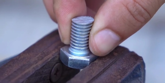 Вначале отпиливаем болт по длине, лишнее нам ни к чему.