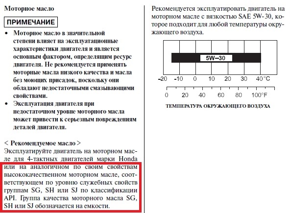 Именно в своем большинстве, для мотоциклов и 4 тактных лодочных двигателей это масла группы SH, SG, SJ опять же по API. Ну и пару картинок в подтверждение из инструкций.