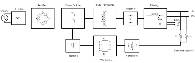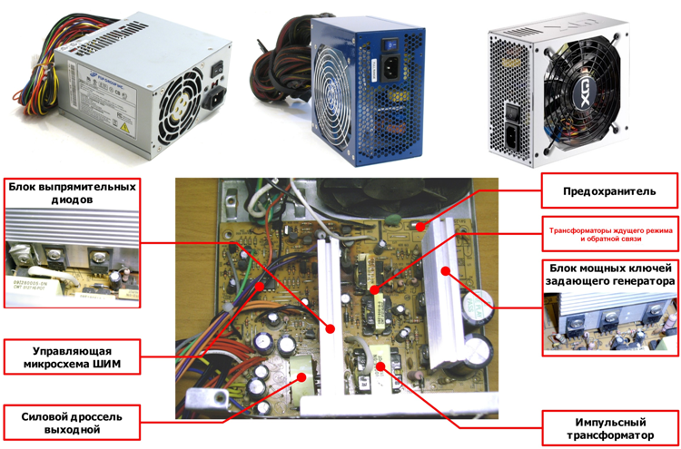Схема узлов в блоке питания компьютера