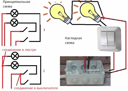 На самом деле мы уже писали на нашем сайте о том, как подключить и подвешать люстру с 3 лампами в вашей квартире (доме). (см «Как подвешать и подключить люстру») Фактически эта статья является даже не частным случаем, а еще одной более подробно попыткой описания подключения люстры с двухклавишным выключателем. Вся простота и легкость подключения, с которой возможно справиться один, вполне возможно другому будет в тягость. Дело здесь даже не в уровне интеллекта, а в том, что все люди разные и кто-то просто никогда даже не пробовал заниматься электрикой, но пришло время заняться и этим, в чем мы со своей стороны максимально постараемся помочь, чтобы сделать процесс не простым автоматизированным действием, а обдуманным и осмысленным поступком. Итак, начнем подключать наш двухклавишный выключатель к люстре…