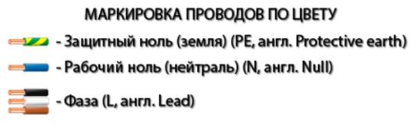 Ну, и самое главное, о чем хотелось бы сказать при обзоре данных схем, это о принятых стандартах цветов проводов. Если вы еще не заметили, то мы вам подскажем, что каждый из видов проводов, будь то ноль, фаза или земля, обозначаются своим цветом. Если конкретнее, то по цветам провода можно классифицировать так…