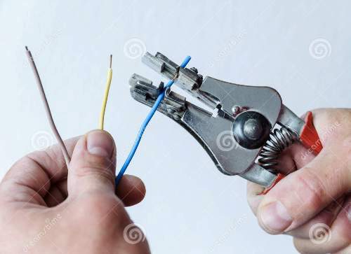Так вот, скрутка производится следующим образом. Зачищаем провода, изоляцию снимаем с проводника примерно на расстоянии 5 см. Для этого можно использовать острый нож, бокорезы, кусачки, специальный инструмент.