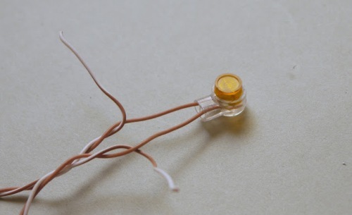 Зачищаем провода, надеваем гильзу и обжимаем ее по месту. Получается следующее. Осталось заизолировать.