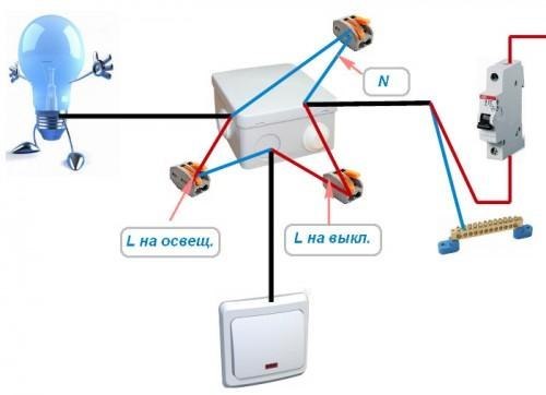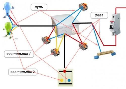 Схемы соединения проводов в распределительной коробке для выключателя и люстры