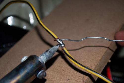 Пайка, по сути, опять та же скрутка, но с заполнение пустого пространства между проводниками припоем. Этот способ самый доступный и самый надежный для обывателя, как кажется нам. При этом не надо бояться того, если вы совсем и никогда не паяли, и не держали паяльник или горелку в руках. Здесь все очень просто. Главное взять мягкий припой (ПОС 61) или его аналоги. Лучше всего сходить в радиомагазин и не экономьте на припое, так как именно от его качества будут зависеть ваши соединения в проводке и нервы после работы с ней. Итак, сходили в магазин, купили хорошего припоя, паяльник и паяльный жир. Паяльник нужен на 40-60 Ватт. Большую мощность не надо, и меньшую тоже! Если мощность будет маленькая, то паяльник просто не разогреет провода. Паяльный жир это нечто напоминающее жир, но на самом деле кто его знает что там. На нем так и написано, «Паяльный жир»! В магазине вам в этом помогут. Итак, скручиваем провода, как и в первом случае, то есть на скрутку.