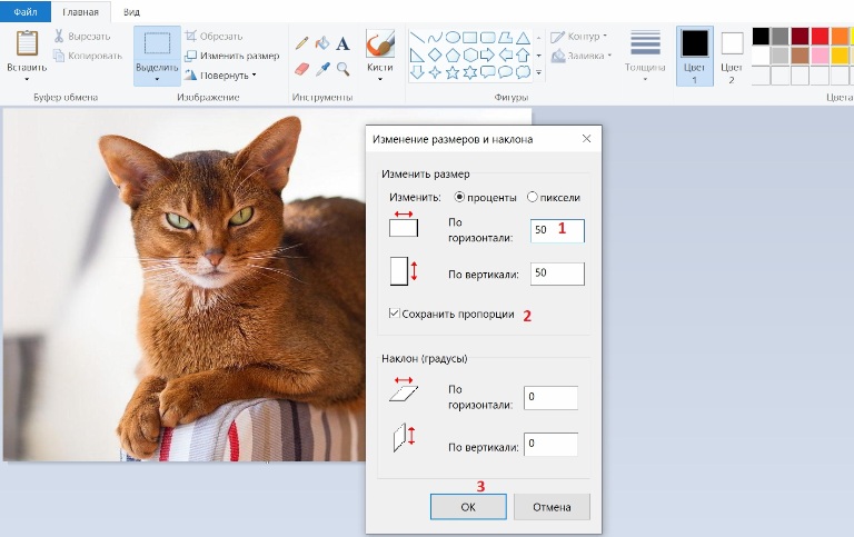 Собственно эти знания и позволят вам изменять размер, масштаб картинки в Паинте. Заметьте, что здесь можно сделать наклон картинки, я бы сказал исказить по вертикали или горизонтали. Возможно и такой эффект вам будет полезен для каких то своих целей. А если вам необходимо повернуть картинку, то об этом я уже писал ранее.
