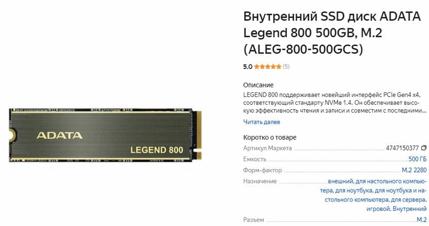 ADATA Legend 800 500GB, M.2
