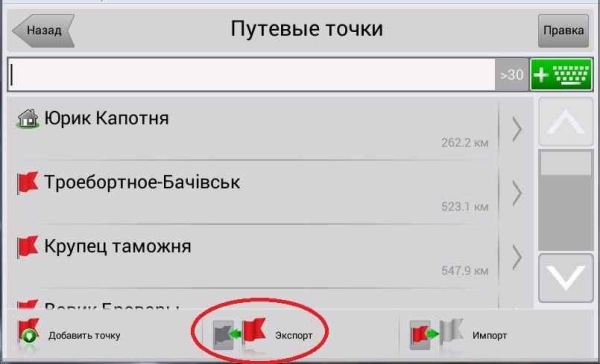 Затем уже не экспортируем, а импортируем. Жмем импорт, выбираем файл и наши точки заливаются на новый навигатор.