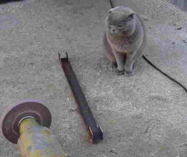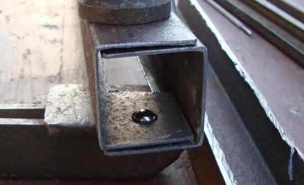 Теперь начинаем собирать поворотные крепления, то есть соединять стационарную и поворотную планку. С одной стороны она будет закреплена на стержне, то есть на подобие обычных петель, а с другой будет вварен шарик, такой своеобразный фиксатор. Что же смотрим.