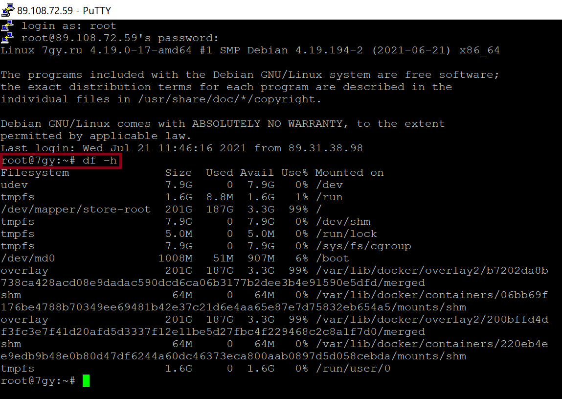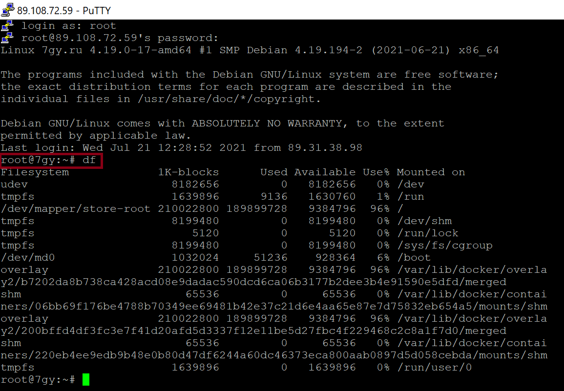 Диагностировать проблему заканчивающегося пространства можно скажем через панель isp, где даже бывают всплывают сообщения о заканчивающемся дисковом пространстве, либо через PuTTy, что ближе к реальному администрированию сервера. Именно о таком способе и о такой команде я и расскажу в этой статье.