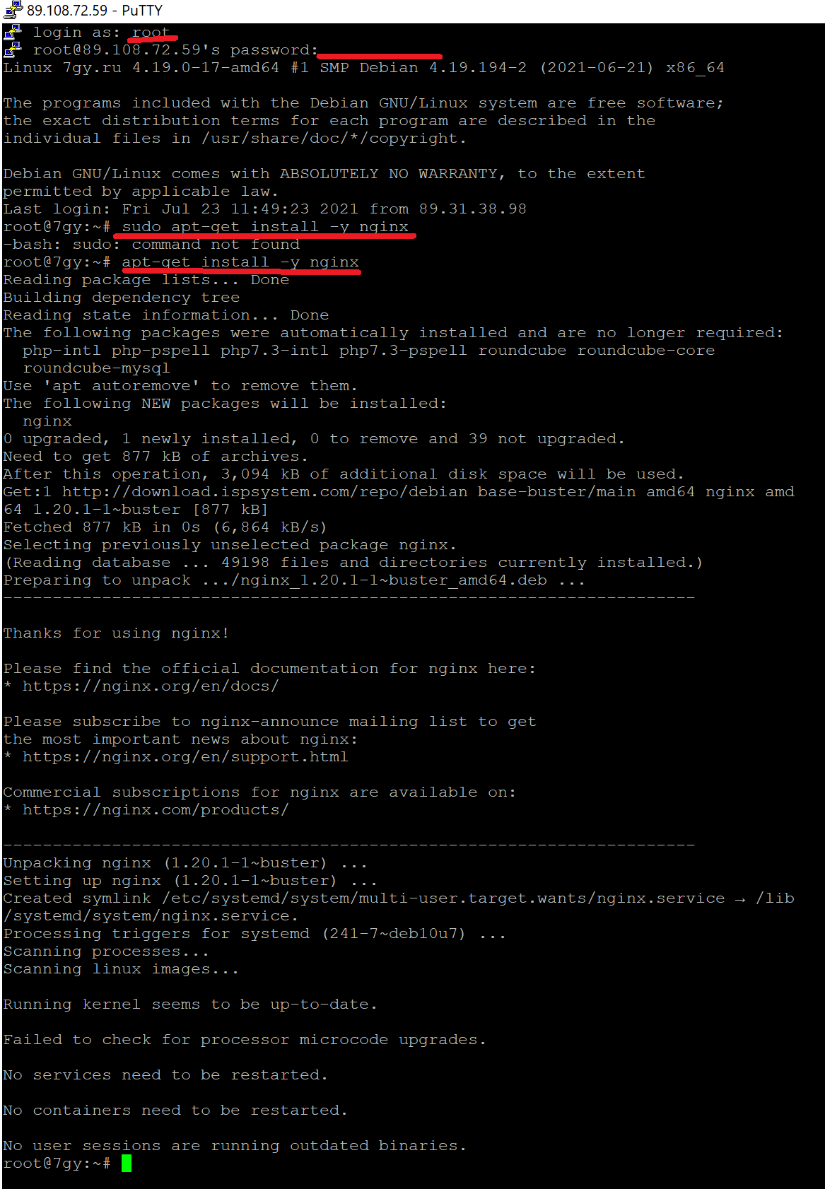Само собой надо предварительно зайти на сервер с полными правами для установки, набрав пароль.
