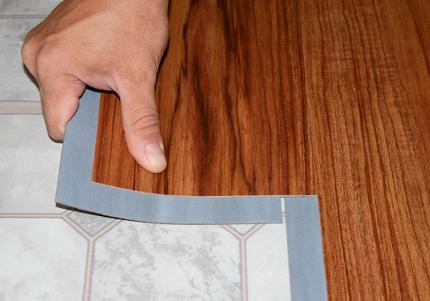 Самоклеющийся слой позволяет легко и быстро монтировать плитки ПВХ на пол. Здесь лишь надо быть аккуратным и последовательным, иначе плюс станет минусом. Приклеив плитку не так, и оторвав ее, вы потом не можете ее использовать повторно.