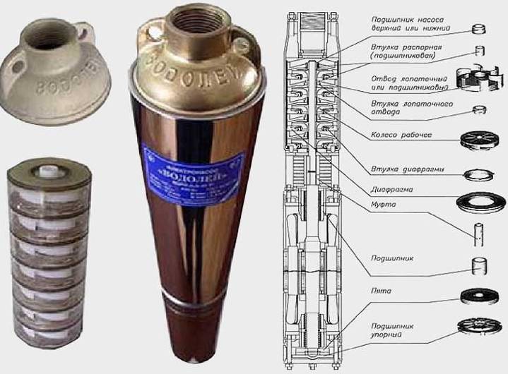 На самом деле это один из самых распространенных и эффективных вариантов насоса для скважины, со своими плюсами. Плюсов здесь много. Это отсутствие необходимости держать постоянно в трубе воду для всасывания. Низкие вибрации для скважины по сравнению с вибрационным насосом. Высокая высота подъема воды. Хорошее охлаждение за счет этой же воды. Доступность и относительная простота и понятность конструкции, о которой мы и погорим далее.