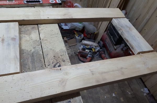 Первый этап – это изготовление каркаса двери. Боковины отрезаются по 192 см, а поперечины 72 см (учитываем соединение «шип-паз» - 5-6 см - и оставшуюся ширину боковин). Вырезаются пазы и шипы, соединяются и должен получится вот такой каркас.