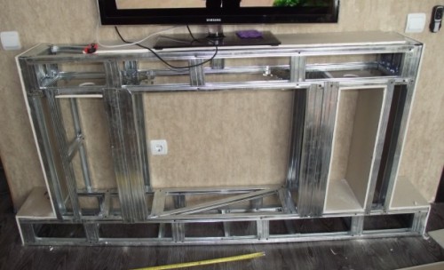 В итоге, когда весь остов готов можно приступать к обшивке остова гипсокартонном.