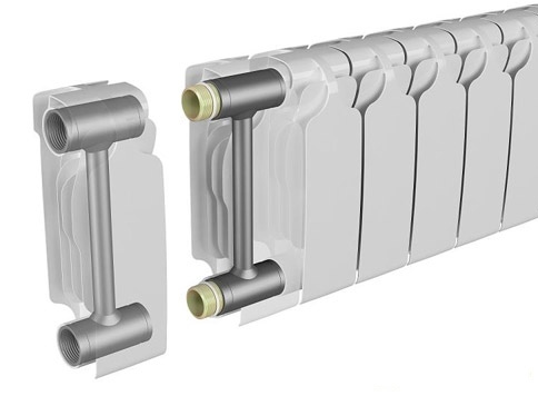 Теперь расскажем о биметаллических батареях. Такие батареи, исходя из своего названия, изготавливаются из двух металлов. Как правило, это тот же алюминий по поверхности, и наиболее прочный по механическим характеристикам металл «сердцевины».