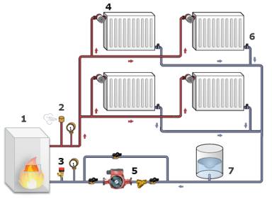 5 – циркуляционный насос. Обеспечивает прокачку отопителя в системе отопления, он сродни сердцу в живом организме.