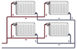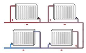 Теперь о двухтрубной системе отопления в частном доме. Это система отопления, которая имеет несколько контуров, то есть фактически поддерживает несколько однотрубных систем, о которых мы рассказали чуть ранее;