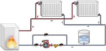 Первый вариант это применение принудительной системы циркуляции, а второй - естественная циркуляция.