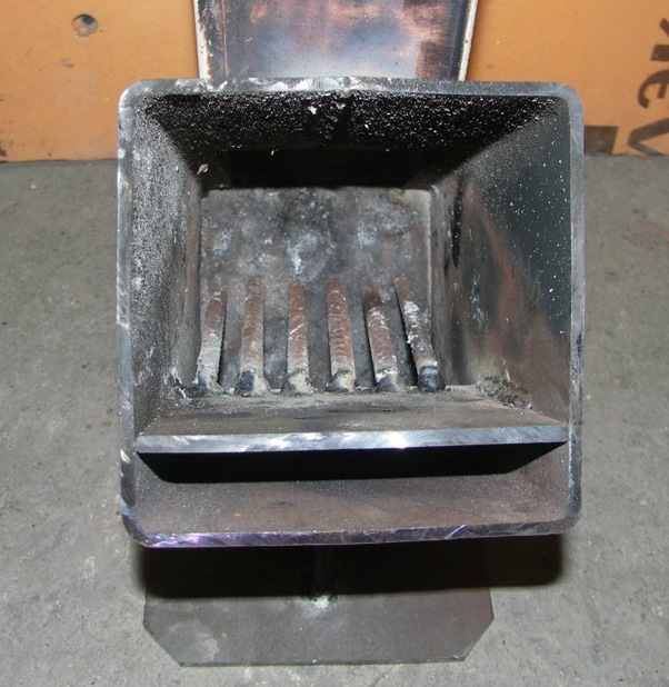 Привариваем площадку для установки нагреваемой емкости или как в нашем случае "пальцы" от шаровых опор. Здесь надо понять на какой точно высоте выставить площадку, чтобы обеспечить хороший КПД. Если площадка будет слишком высоко, то толку с такой печки будет немного. Именно поэтому лучше первоначально поэксперементируйте, а потом приварите площадку окончательно.