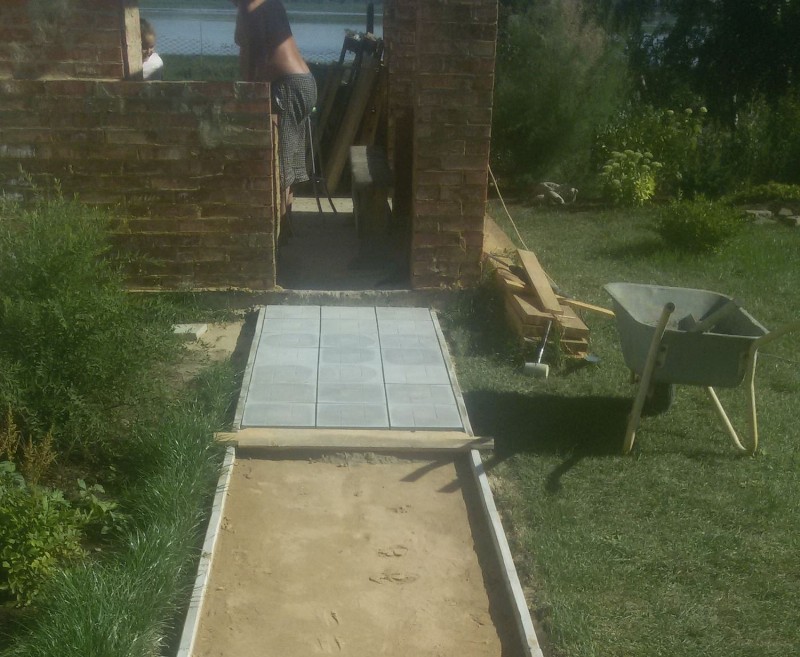 Опять благоустройство в виде тропинки выложенной плиткой.