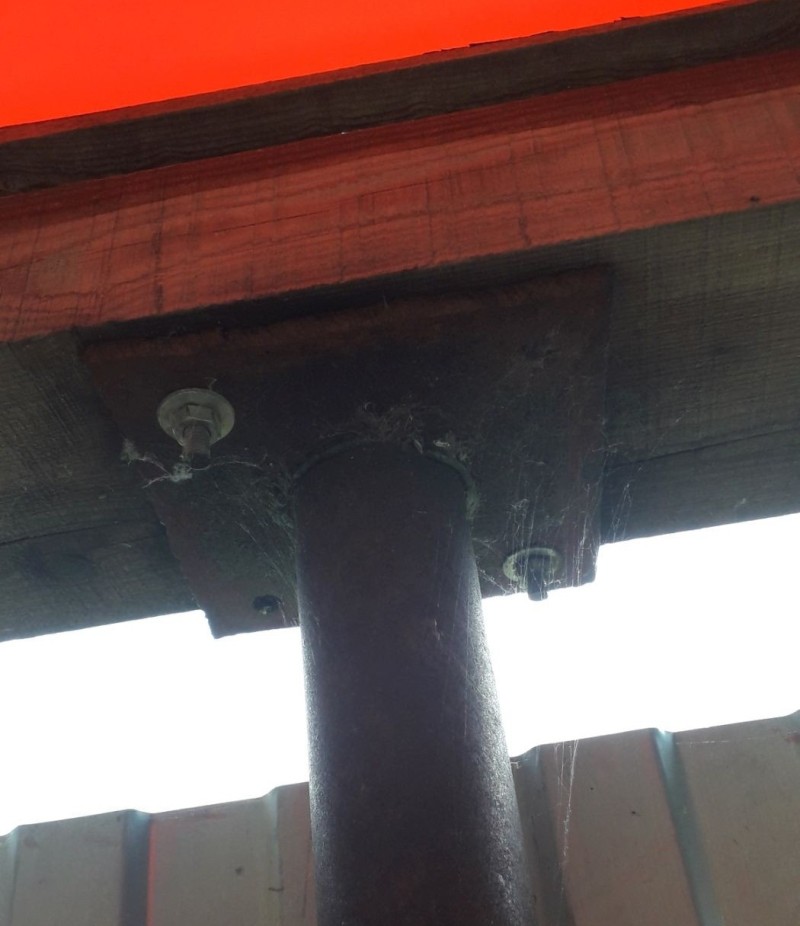 К трубе привариваем площадку-лист с отверстиями. Через них будет крепится балка для стропил.