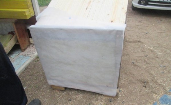 Внутрь полости прокладываем минеральную вату, а сверху (низ и верх), закрываем пленкой. Это необходимо для того, чтобы утеплитель не набрал влаги и не потерял своих свойств.