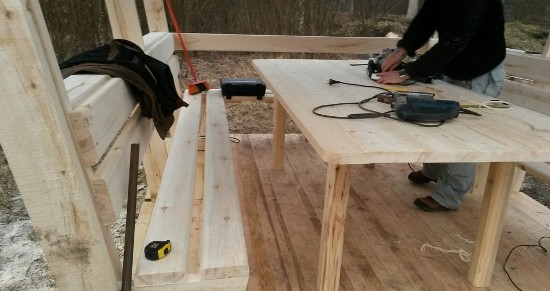 Беседка своими руками с входами с торца, с скамейками и столом (вариант 2)