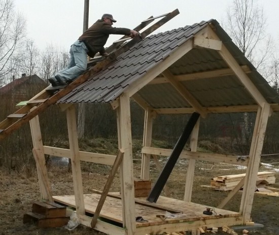 Делаем обрешетку для профлиста, которым будет крыться крыша беседки